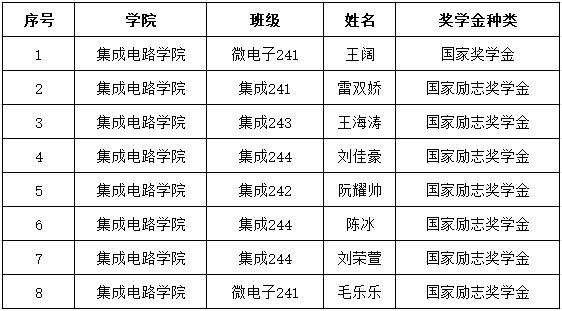 本着公平、公正、公开的原则,经学生本人申请、班级奖学金评议小组民主评议、学院奖学金评审工作组审核,拟推荐8名学生为2024-2025学年国家奖学金、国家励志奖学金获得者,现将名单公示如下:
